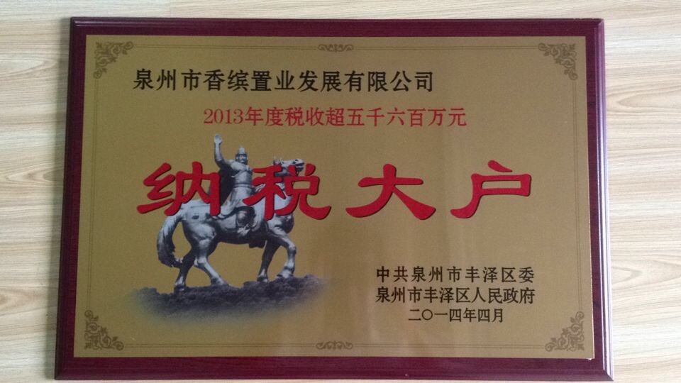 香繽集團旗下泉州香繽置業榮獲"納稅大戶"稱號